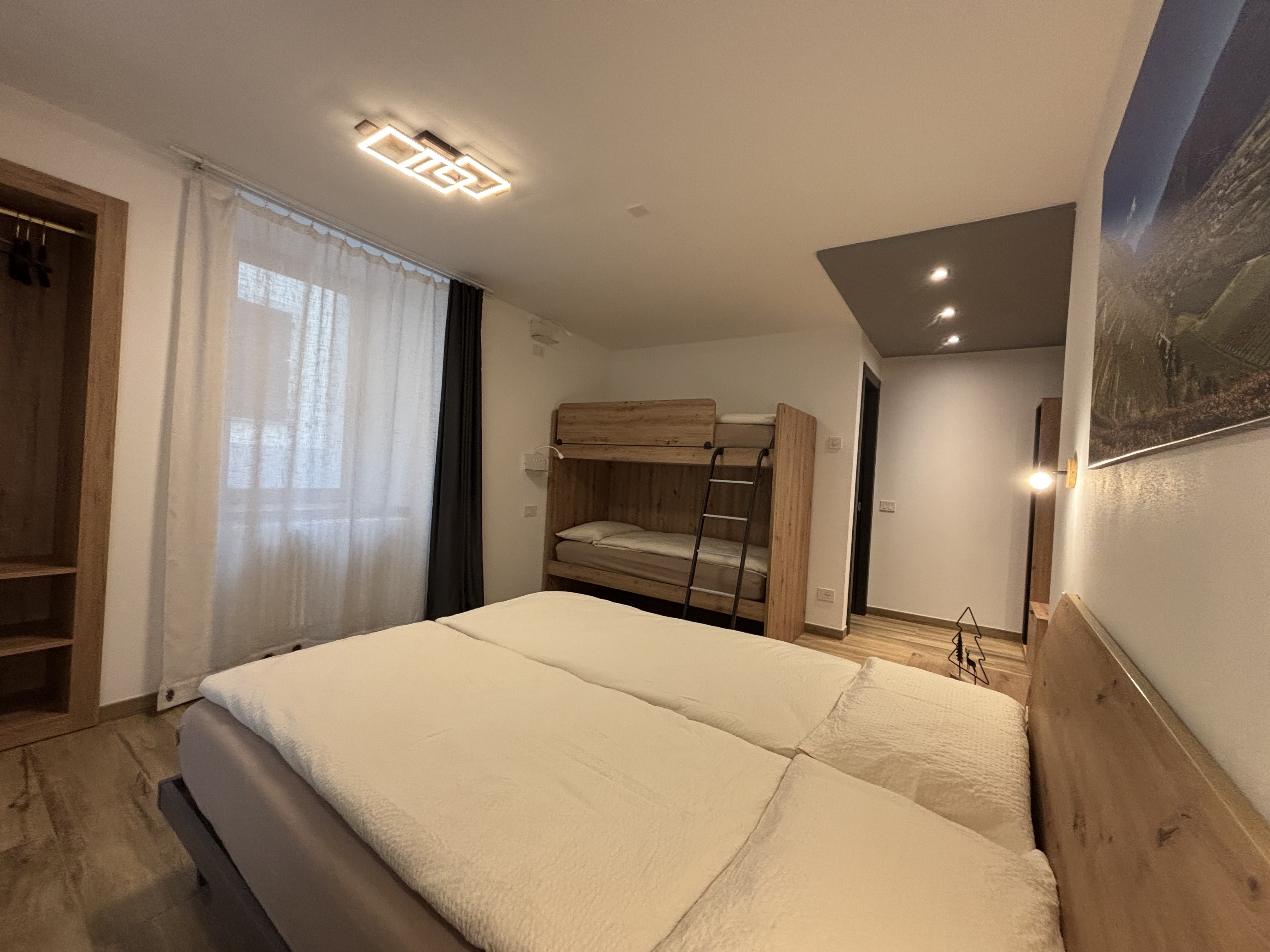 È arredata con letto matrimoniale, letto a castello, due armadi e mini frigo.